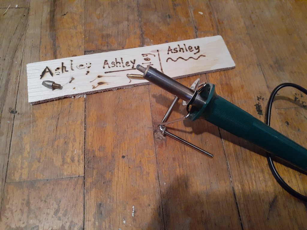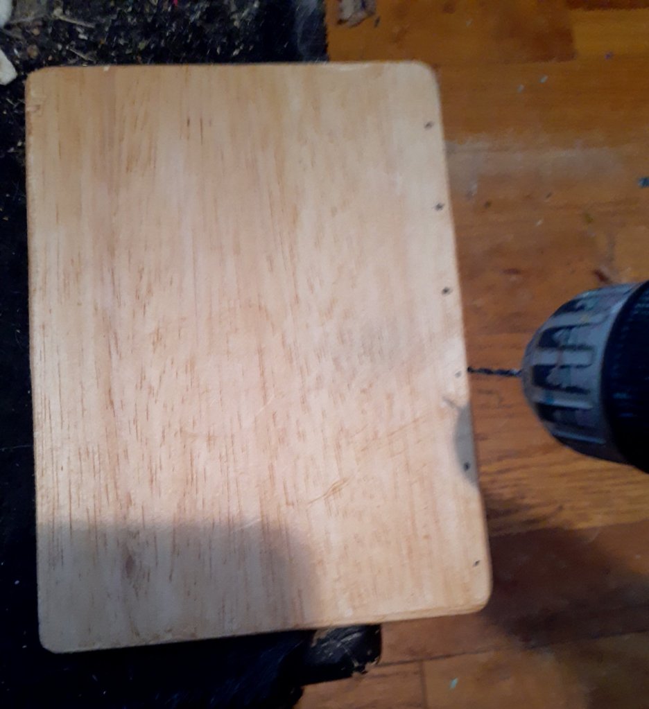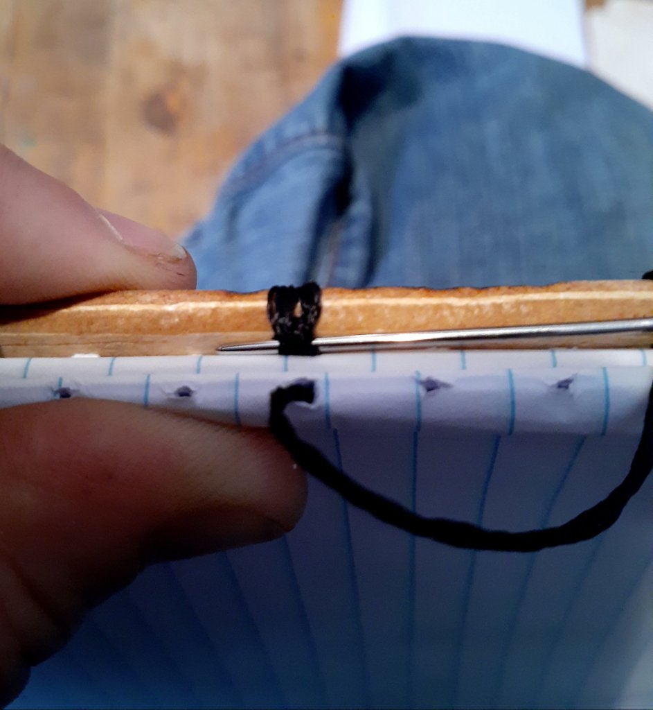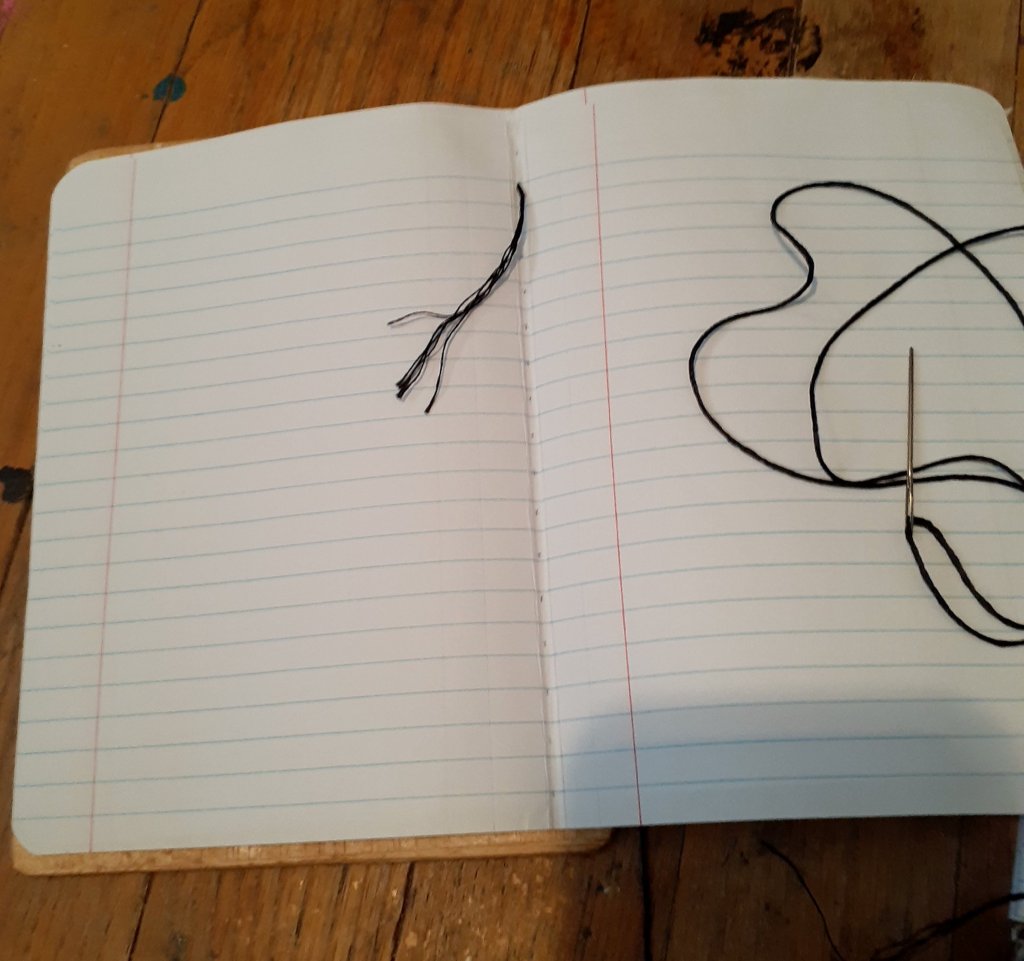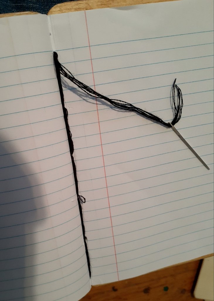 I had a lot of fun making these wood burned notebooks! I combined my love of OP Art and woodworking!This project is time consuming but it’s fairly cheap. I made a ton of notebooks and sketchbooks for Christmas gifts!I used 1/4 inch sanded plywood. You want to use plywood rather than underlayment so that the top wood layer will be thick enough. The easiest way to make lined notebooks is to start with a composition book. I bought 5×7 mini composition books for $.67 at walmart.You want to cut your plywood half an inch bigger than your paper. Since I used a 5″x7″ notebook, I cut my wood at 5.5″x7.5″. Then you want to sand it smooth. I like doing it on top of a piece of scrap wood so the bottom doesn’t get messed up.I sanded the front and back and rounded the sides. I also used my sanded to wound the corners.For the design, I search for op art or zentangles on pinterest. A lot of them have tutorials to show you how to draw it. I like to do a rough sketch before starting on the actual woodburning.I used a cheap $15 woodburning tool from Joanns and used a 50% off coupon. There are definitely more expensive fancier options out there, but this one worked for me. I strongly recommend using a piece of scrap wood the same kind as your covers and practicing woodburning. Get a feel for the different tips and how it works with your wood. My personal preference is the flow point.Lightly transfer your design to the board using a pencil. You can so whatever design you like. It doesnt have to be geometric patterns.I like to leave a clear rectangle to add a name or title. My cat likes to supervise.Begin woodburning. Be careful to hold the tool at a high enough angle that the round part of your tool doesn’t touch the wood and leave unwanted marks.Here’s my finished design! This took me about an hour.I stained front and back covers on both sides with Rustoleum Summer Oak. It gives the wood a richer feel while being light enough to not hide the design.To prepare the paper, take your composition book and carefully remove the coverCarefully remove the threadEvenly divide your papers into 5 stacks, with the shortest pages in the middle.As you can see, the center of the pages has multiple holes. I mark every 3rd hole to know where my thread will go.Line your paper up with the front cover. Mark every 3rd hole location so you will know where to drill.Mark holes on the back cover so it will match the front cover.Carefully drill holes in both covers.Here’s what you will need to Coptic stitch bind your book. You will want a long string. In my experience, it needs to be at least 7 times the length of your book. It’s better to have too much string than too little. Start with one stack of papers. Sew through the first hole.Sew through the front cover. wrap the string around the string between the cover and paper and then thread it back through the front cover and into the same hole in the paper.Tie a knot when you pull the string back to the middle of the pages and then sew through your next marked hole.Continue sewing through the marked holes and into the front cover. You can see me wrapping the string around the stitch and then back through the front cover and into the paper.Once you finish attaching the front cover, rather than going back into the original stack of papers, you need to attach the next stack.Insert your needle into the next set of pages.Continue following the same pattern, threading it through the holes. But rather than threading it through the front cover,wrap your string through the existing knotThe inside of the pages should look like this. You will sew through every 3rd hole, wrap it around the existing knot, then back through the same hole in the paper. Then sew through the next 3rd hole up.As you add each stack of pages, wrap the thread around the last knot.The back cover is kind of tricky. Finish attaching all 5 sets of paper. Then you are going to thread through the back cover, wrap it around the knot, and then go back into the last stack of pages again. Continue with each hole. When you get to the last hole, tie a knot in the center of the pages. For a better tutorial on binding, search Coptic binding on pinterest.This is mostly what your spine should look like. As you can see, on one hole I pulled too tight, ripping through a hole.Coptic stitch binding allows the notebook to lie flat.And here it is, done!